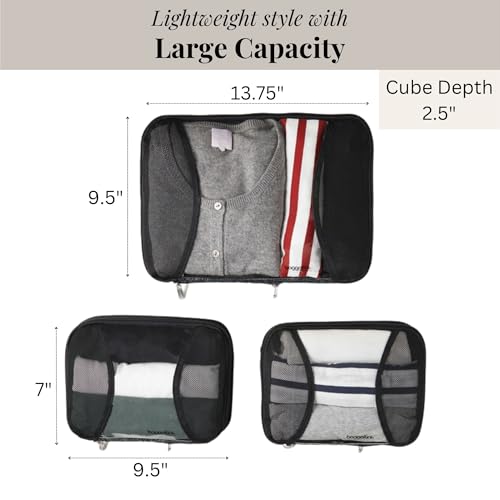 MESH TOP FOR BREATHABILITY: Our travel cubes feature a breathable mesh top, designed to keep clothes fresh and well-ventilated. Perfect for maintaining garments while on the go, away for the weekend or during extended travel.