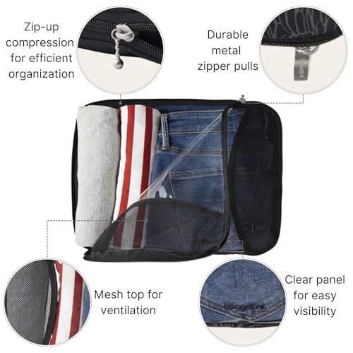 SPACE-SAVING ZIPPERED COMPRESSION DESIGN: Maximize luggage space with the zippered compression feature. These travel packing cubes reduce bulk, allowing you to pack more efficiently, whether you’re traveling for business, vacation, or a weekend getaway.