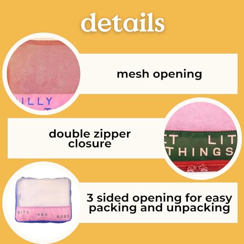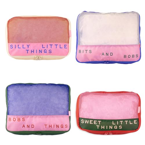 ban.do Getaway Polyester and Mesh Packing Cube Set, Includes 4 Foldable Luggage Organizers in Various Sizes, Bits and Bobs