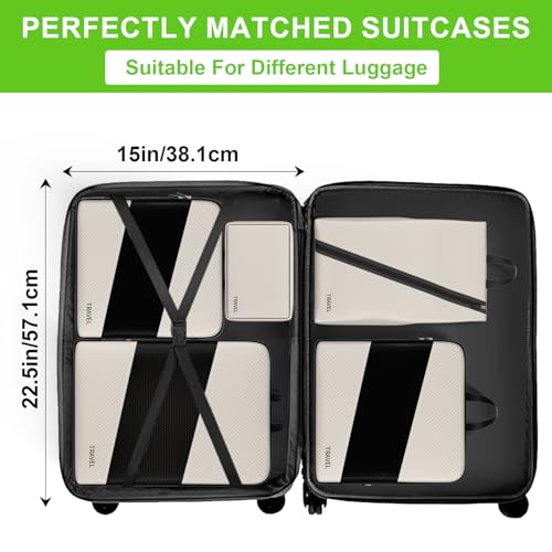 【ITEMS INCLUDED】Compression Bag L ✖1(16.9″*12.6″*3.5″) Compression Bag M ✖2(13.7″*12.2″*3.5″) Shoes Bag✖1(17.5″*9.2″) Laundry Bag✖1(20.6″*14.3″) Toiletry Bag✖1(9″*6″*3″)