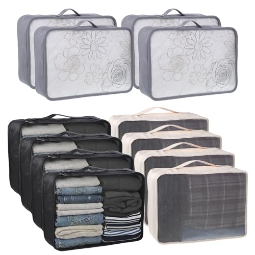 SHENLIU 12 Pcs XL Packing Cube for Travel Luggage Organizer, 17.7 x 12.99 x 4.72 inches Reusable Black Gray Beige Mesh Travel Luggage Bags for Hiking Camping Accessory