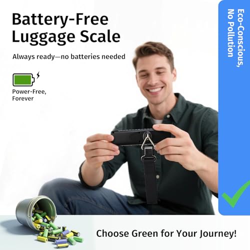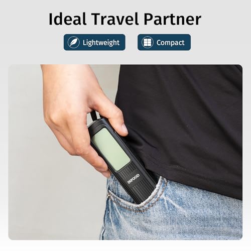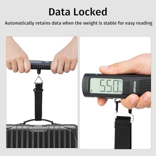 INFOOD Battery-Free Digital Luggage Scale, Suitcase Scale for Travel, Portable Luggage Weight Scale with Hook & LCD Display for Luggages, Packages & Bags, 110lb/50kg Handheld Scale, Black