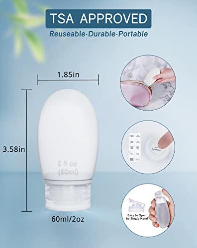 TSA Approved Silicone Travel Bottles: 4 Pieces 2 OZ Silicone Travel Bottles which are made of top grade silicone and leak proof.