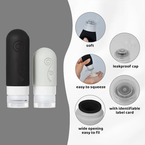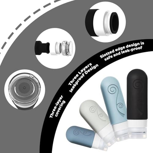 Tsa Approved Leak Proof Travel Toiletries Bottles: The silicone bottles are designed with 3-layer leak-proof with a sturdy flip-top lid to protect your bottle from spills, leaks or drips during transport, prevent your expensive cosmetics from leaking during travel, with our unique leak-proof design