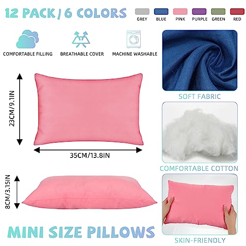 Kigley 12 Pack Mini Pillows for Daycare 9.1 x 13.8” Small Travel Pillow Bulk Soft Breathable Cotton Pillow for Nap Travel Pet Neck Lumbar Purse Insert (Dark Color)