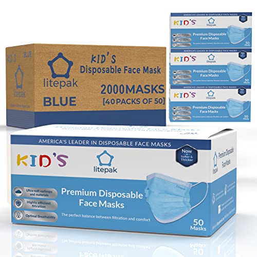 2000pcs Kids Disposable Face Masks – 3 Ply Kids Masks for Boys Girls (Blue)