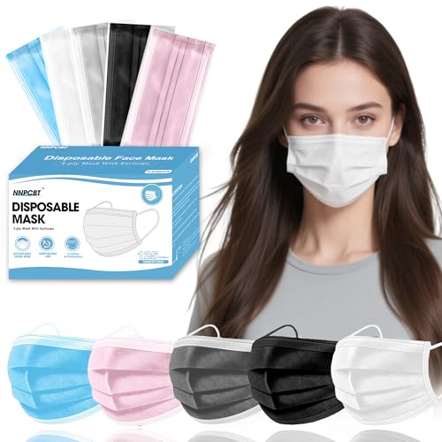 NNPCBT 5 Color Disposable Face Masks 125 Pack,3-Ply Breathable Mask For Adults,Great For Outdoors,Home, Office, School