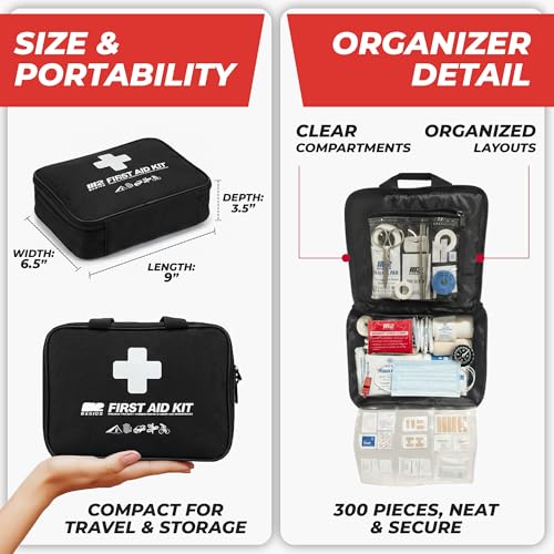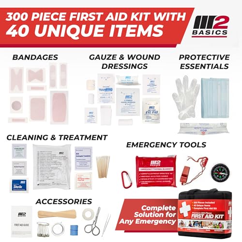 M2 BASICS Premium First Aid Kit, 300 Pieces, 40 Unique Items, All Purpose Kit for Home, Car, Business, Travel & Vehicle