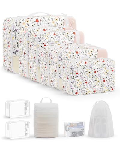 11 Set Packing Cubes for Travel, Gifts for Women Mom Kids, TSA Approved Bags for Makeup, Cosmetic, Toiletry, Suitcase Organizers for Checked Luggage,Cruise Essentials,Airplane Accessories,White Floral