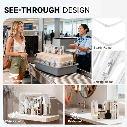 Clear TSA-Ready Bag: Two-bag set stores toiletries and makeup separately to match your routine, with a TSA-friendly design that speeds you through security. Waterproof material wipes clean and prevents leaks, while reinforced seams resist splitting