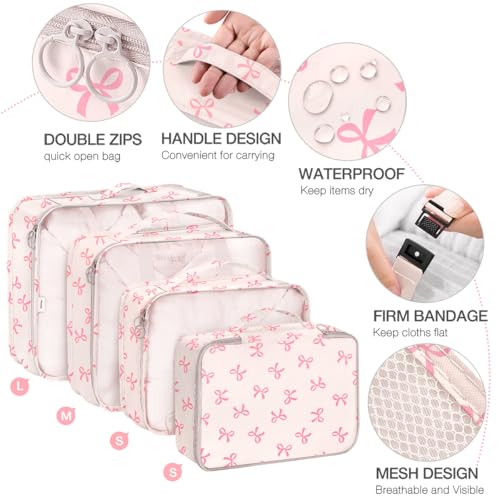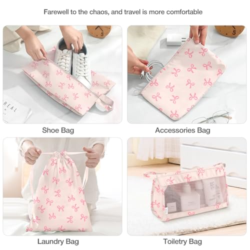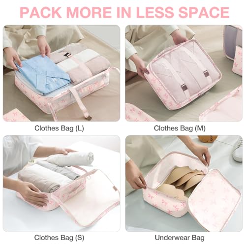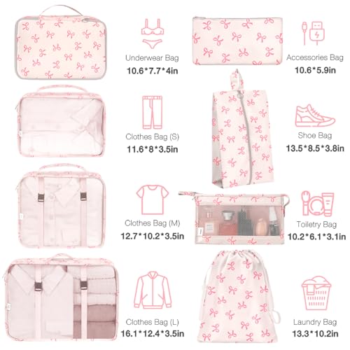 8 Set Packing Cubes for Suitcases,Suitcase Organizer with Shoe,Cosmetics,Clothing, and Accessories Bags for Travel Luggage Organizer Women Men(Pink Bows)
