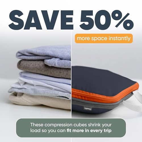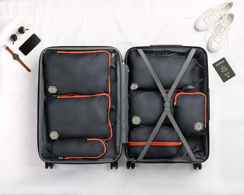 Large Compression Packing Cubes for Travel-Packing Cube Luggage Organizers 7 Piece Set for Checked Luggage-Ultralight, Expandable/Compression Bags by TRIPPED Travel Gear (Grey/Orange)