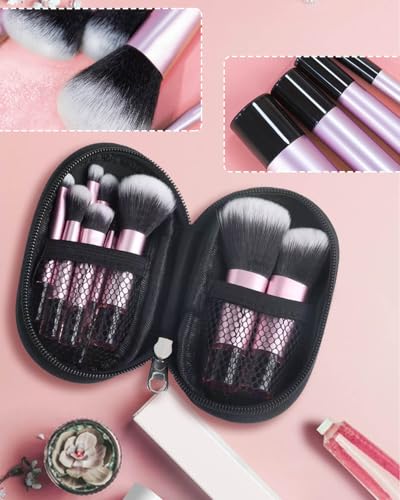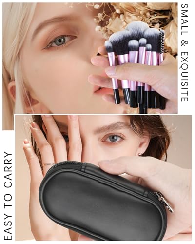 10 Pcs Travel Makeup Brush Set Black Mini Makeup Brushes with Makeup Brush Pouch Portable Foundation Powder Concealers Eye Shadows Makeup Set Professional Makeup Brush Set
