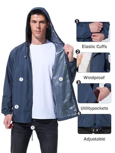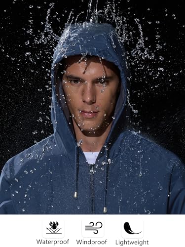 Mens Rain Jacket Raincoat Windbreaker Running Waterproof Lightweight Packable with Hood Travel Hiking Cycling